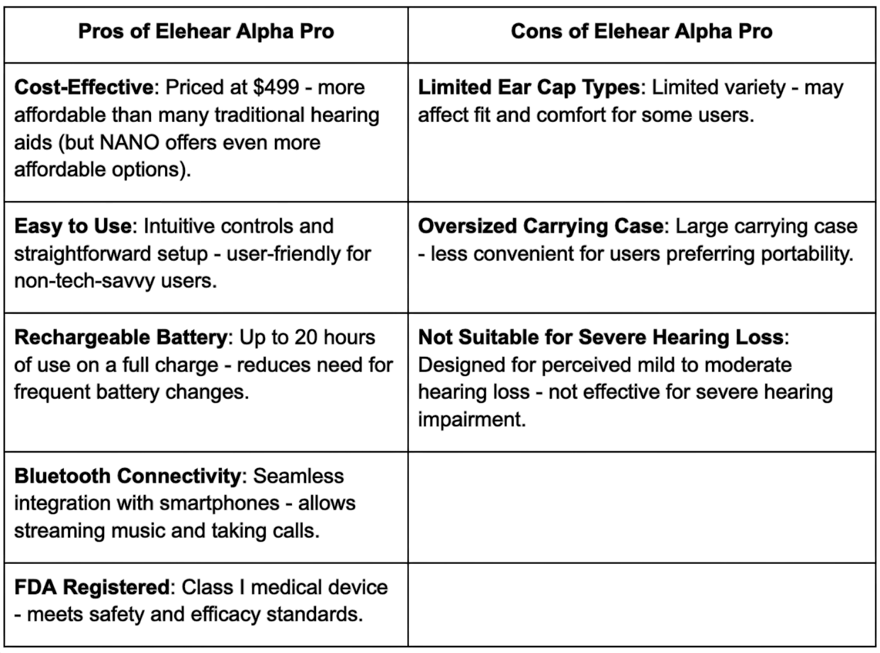 Retail Price and Discounts: The Elehear Alpha Pro is priced starting from $459 - making it a cost-effective option compared to traditional hearing aids, which can cost thousands. Elehear occasionally provides promotions or discounts on the Alpha Pro model.