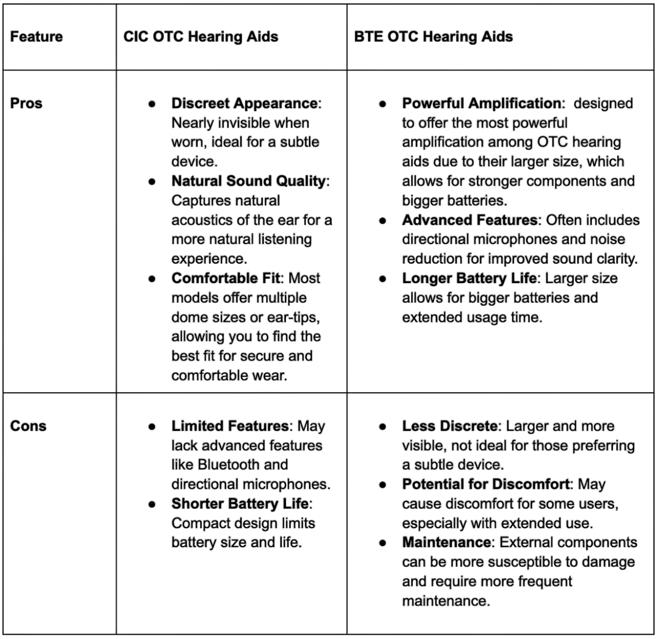 - Customization options and advanced functionalities differ between CIC and BTE OTC hearing aids.