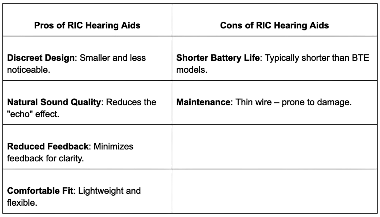 - RIC hearing aids often provide a more natural sound experience and less feedback.