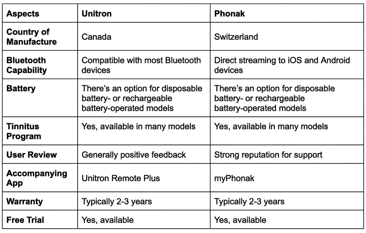 Unitron vs. Phonak: Quick Comparison Table
